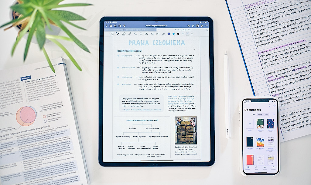 Przez całe liceum robiłam notatki w zeszytach, ale gdy tylko mam okazję, korzystam z aplikacji, takich jak Notion czy – jeżeli chcę zrobić cyfrowe, odręczne notatki – GoodNotes na iPada. Chociaż analogowe notatki mogą wyglądać równie schludne, niestety te cyfrowe robi się o wiele szybciej. Co niesamowicie ważne, są edytowalne, łatwo znaleźć w nich wyszukiwane frazy, dostępne są na kilku urządzeniach (a więc mogą być ze mną zawsze i wszędzie), możliwe jest dodawanie do nich zdjęć, filmów, nagrań głosowych i linków. Notatki w zeszycie wypadają przy tym marnie. Dlatego też na studiach przechodzę na iPada 🙂 Jeśli chodzi o pisanie dziennika, to tutaj wybór jest prosty – stanowczo wolę pisać ręcznie. To jedyny moment, kiedy nie muszę się spieszyć. Pośpiech jest wręcz niewskazany, dlatego warto ten moment wykorzystać. Poza tym, pisząc w prawdziwym zeszycie, mam wrażenie większej intymności, której nie odczuwam, korzystając z takich aplikacji, jak chociażby DayOne, która – mimo że jest bardzo dobrą aplikacją – chyba nigdy nie dorówna ręcznemu pisaniu w dzienniku. To właśnie tutaj ważny jest dla mnie rytuał związany z odręcznym pisaniem, z którego nie chcę całkowicie w moim życiu rezygnować.